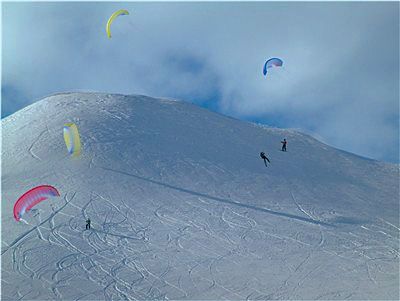 Mit anderen Worten: Solange der Wind weht, kann man ohne das lästige Anstehen am Skilift und abseits vom Trubel den Schnee und die Berge ge- nießen. Und wer die Faszination einer Pulverschnee- Session mit dem Snowkite einmal erlebt hat, versteht sofort die Suchtwirkung, die viele Fun- sportler ergreift.