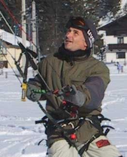 Für Sebastian Ober, in den Chiemgauer Bergen aufgewachsen und seit 1993 Snowboardlehrer, lag die Verbindung von Powerkiten und Wintersport von Anfang an auf der Hand. Kaum beherrschte er im Herbst 1998 seinen ersten Powerkite, startete er schon Fahrversuche auf dem Snowboard. „Ich kämpfte bis zur Erschöpfung mit den mir zu diesem Zeitpunkt unerklärlichen Tücken der Materie“, erzählt er heute. Aus dieser Erfahrung heraus ist für ihn die Motivation gewachsen, selbst Snowkitekurse für Einsteiger anzubieten: „Das schriftliche Lernmaterial aus dem Internet oder Magazinen bezog sich auf das Kitesurfen im Wasser und war noch dazu in Englisch. Erst mühsame Trial&Error-Erfahrungen brachten mich schließlich doch noch zum Vergnügen des Snowkitens.“